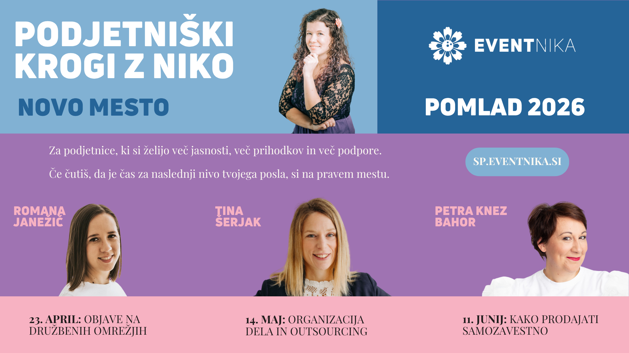 Podjetniški krogi z Niko v Novem mestu tako združujejo strokovno vsebino, praktično delo, močne gostje in podporno skupnost podjetnic. Namen programa ni le prijetno druženje, ampak ustvarjanje prostora, kjer lahko podjetnica svoj posel pogleda bolj jasno, bolj premišljeno in z več zaupanja vase.