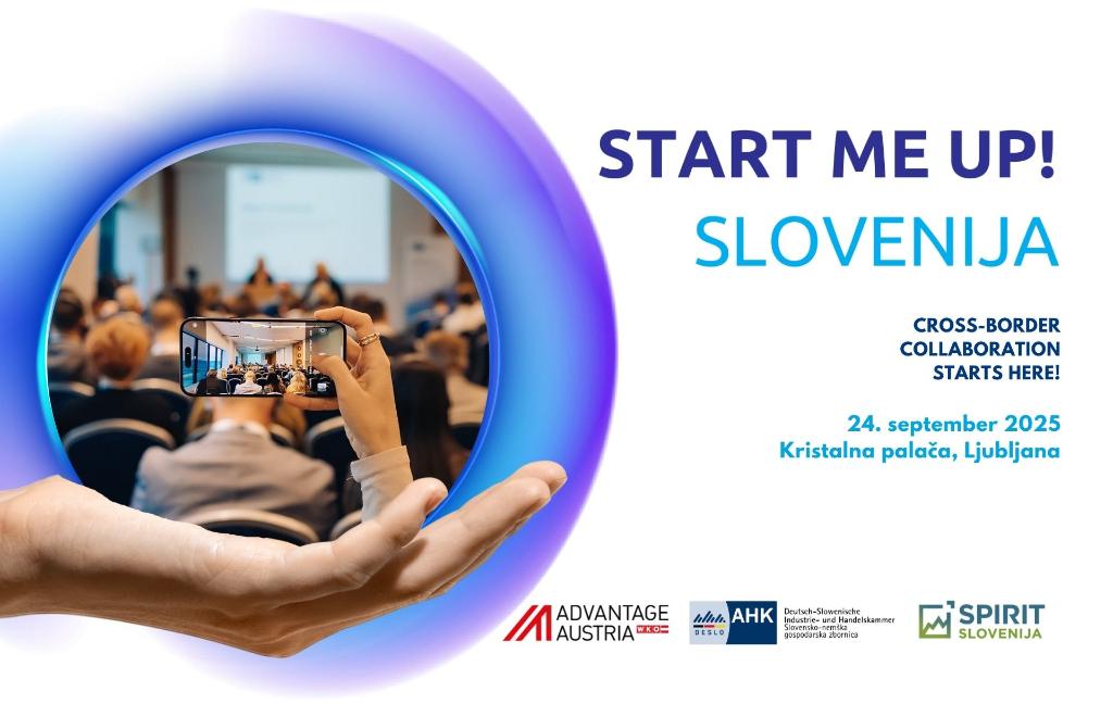 24. septembra 2025 bo v Kristalni palači v ljubljanskem BTC Cityju potekal dogodek StartMeUp! Slovenia, ki povezuje inovatorje, podjetnike in investitorje iz Nemčije, Avstrije in Slovenije.Namen dogodka je odpreti vrata v nove trge, ustvariti dolgoročna partnerstva ter okrepiti čezmejno sodelovanje.