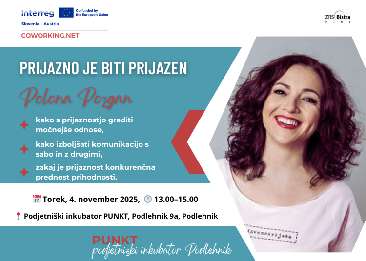 Motivacijsko predavanje: Prijazno je biti prijazen (v poslovnem svetu) s Polono Požgan, Podlehnik