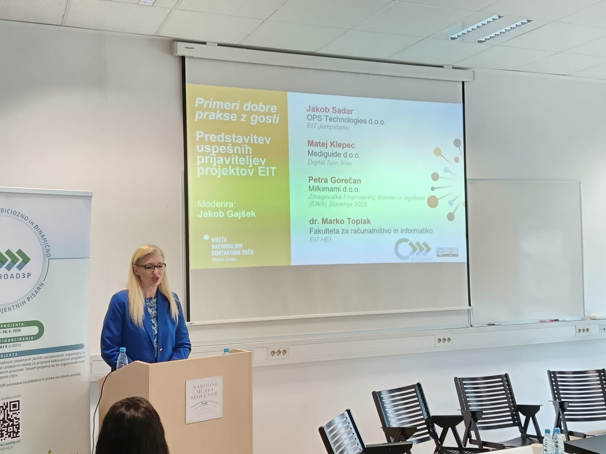 - mag. Sabina Žakelj Pediček, SPIRIT Slovenija, nacionalna kontaktna točka EIT, ki je predstavila EIT strukturo in delovanje v 2026-28,
